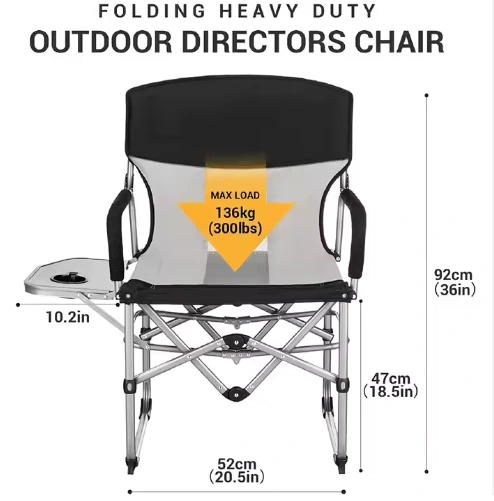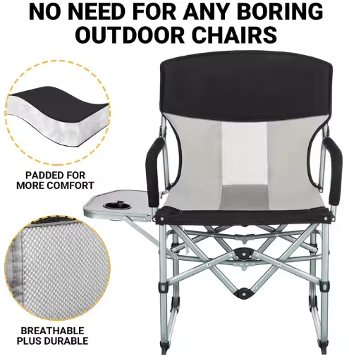 BBQ ക്യാമ്പിംഗ് പിക്നിംഗ് കസേര, മടക്കിക്കൊണ്ടിരിക്കുന്ന ക്യാമ്പിംഗ് ചെയർ, ഹെവി ഡ്യൂട്ടി പോർട്ടബിൾ ഡയറക്ടർമാർ സൈഡ് ടേബിൾ ടേബിൾ മെഷ് ബാക്ക് ബാക്കക്റ്റ് സ്റ്റൈൽ