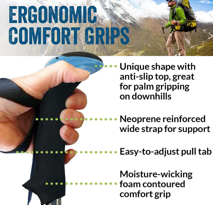 ഇരട്ട കൈകാര്യം ചെയ്യുക ട്രെക്കിംഗ് ധ്രുവം, ക്രമീകരിക്കാവുന്ന 2-കഷണം യാത്രാ കാമുകന്റെ മികച്ച സമ്മാനം. നിങ്ങളുടെ ഉയരത്തിന് അനുയോജ്യമായ ധ്രുവങ്ങളും നിങ്ങളുടെ പിടി തിരഞ്ഞെടുക്കുന്നതും തിരഞ്ഞെടുക്കുക.
