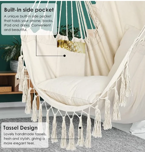 ബ്യൂട്ടിംഗ് പാരച്യൂട്ട് ഹമ്മോക്ക്, സോഫ്റ്റ് സ്പോഞ്ചിന്റെ സുഖങ്ങൾ, മികച്ച മൃദുവാക്കൽ, ദൈർഘ്യം, ആശ്വാസം എന്നിവ ആസ്വദിക്കാൻ ഉപയോക്താക്കളെ അനുവദിക്കുന്നു. അതിനാൽ മുതിർന്നവർക്കോ കുട്ടികൾ അല്ലെങ്കിൽ വളർത്തുമൃഗങ്ങൾക്കുള്ള ഏറ്റവും മികച്ച വിശ്രമ സ്ഥലമാണിത്
