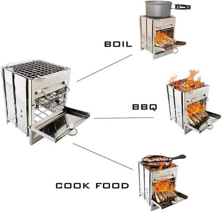 സ്റ്റെയിൻലെസ് സ്റ്റീൽ മിനി കാസറ്റ് സ്റ്റ ove, സ്റ്റെയിൻലെസ് സ്റ്റീൽ കൊണ്ടാണ്, വിറക് റോക്കറ്റ് സ്റ്റ ove വിപുലീകരിക്കാൻ കഴിയും. പോയി യാത്ര ചെയ്യുന്നത് വളരെ സൗകര്യപ്രദമാണ്.