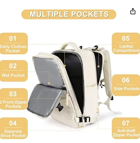 യൂണിസെക്സ് വാട്ടർപ്രൂഫ് ബാക്ക്പാക്ക്, ദിവസേനയുള്ള വസ്ത്ര പോക്കറ്റിന് 4-6 കഷണങ്ങൾ നേർത്ത ടോപ്പുകൾ അല്ലെങ്കിൽ പാന്റ്സ് കൈവശം വയ്ക്കാൻ കഴിയും, അത് 2-3 ദിവസത്തേക്ക് ഹ്രസ്വ യാത്രകളുടെയോ ബിസിനസ്സ് യാത്രകളുടെയോ ആവശ്യങ്ങൾ നിറവേറ്റാൻ കഴിയും; യൂണിവേഴ്സിറ്റി സ്റ്റേഷനറി മാസികകൾ പോലുള്ളവ സംഭരിക്കാനും പ്രത്യേക ലാപ്ടോപ്പ് കമ്പാർട്ട്മെന്റ് കഴിയും